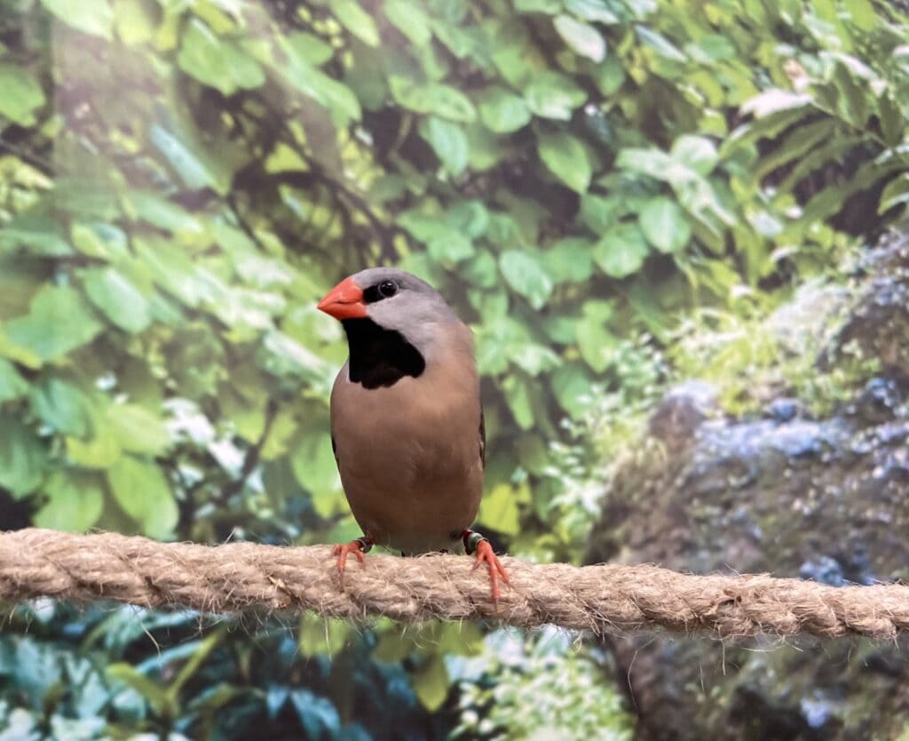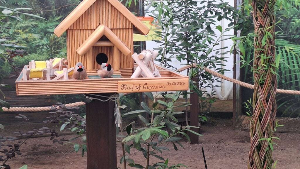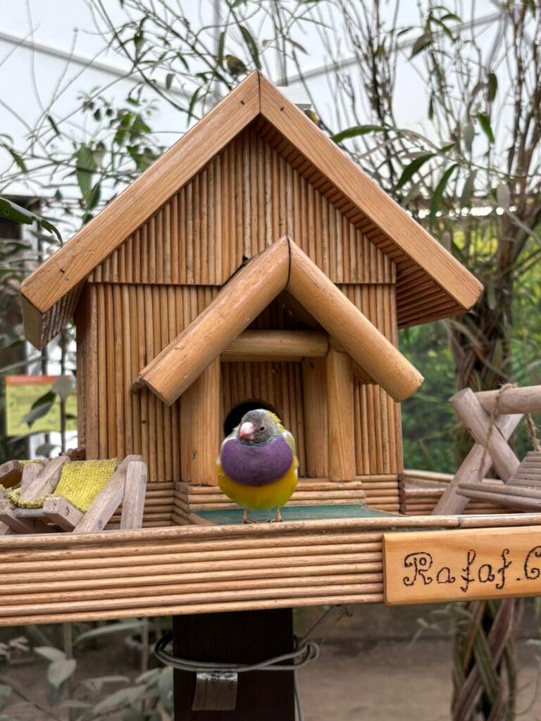 Po drugie – dźwięk. To nie jest ciche muzeum. Zamiast tego usłyszysz niesamowity koncert: od cichych szmerów amadyny wspaniałej, przez radosne nawoływania kubaników, aż po intensywne śpiewy godowe. To naturalna muzyka relaksacyjna, która błyskawicznie pozwala odciąć się od zgiełku miasta.
